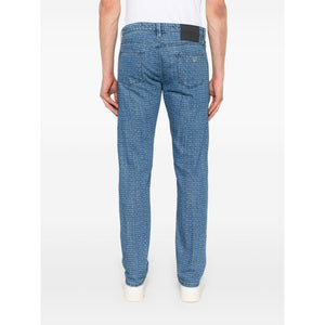 silver-tone logo plaque Allover logo denim jeans Size and Fit - This piece fits true to size. We recommend you get your regular size. Model is 1,84m / 6ft 1in wearing size 32 (WAIST CM)