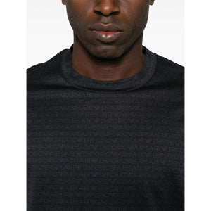 Emporio Armani jersey T-shirt with all-over flocked logo lettering