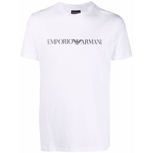 Bright white cotton logo-print cotton T-Shirt from EMPORIO ARMANI featuring jersey knit, logo print to the front, crew neck, short sleeves and straight hem. Logo cotton t-shirt Size and Fit - This piece fits true to size. We recommend you get your regular size. Model is 1,84m / 6ft 1in wearing size M