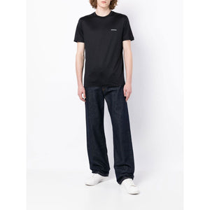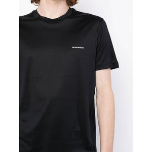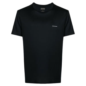 Logo-print short-sleeved T-shirt from EMPORIO ARMANI featuring navy blue, cloud white, lyocell blend, logo print to the front, crew neck, short sleeves and straight hem. Conscious: This item contains at least 50% low-impact materials, which are certified or widely recognised as having a lower environmental impact.. Logo t-shirt Size and Fit - This piece fits true to size. We recommend you get your regular size. Model is 1,84m / 6ft 1in wearing size M