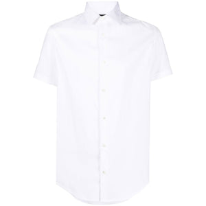white cotton classic collar front button fastening short sleeves curved hem Cotton shirt