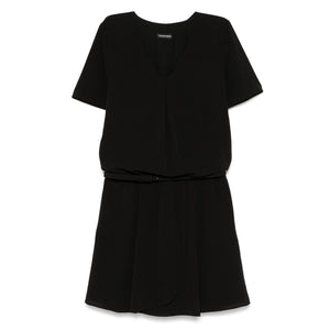 Emporio Armani Short dress with gathered waist and belt in flowing crepe