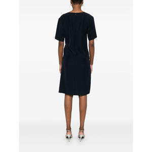 navy blue concealed rear hook and zip fastening side zip fastening side slit crew neck Side-tie mini dress Size and Fit - This piece fits true to size. We recommend you get your regular size. Model is 1,75m / 5ft 8in wearing size 40 (IT)
