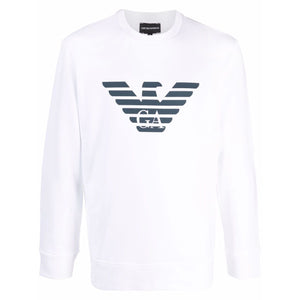 White cotton blend logo-printed sweatshirt from EMPORIO ARMANI featuring logo print to the front, round neck and long sleeves. Logo cotton sweatshirt Size and Fit - This piece fits true to size. We recommend you get your regular size. Model is 1,84m / 6ft 1in wearing size M
