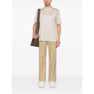 light beige crew neck short sleeves Embroidered logo t-shirt Size and Fit - This piece fits true to size. We recommend you get your regular size. Model is 1,84m / 6ft 1in wearing size M