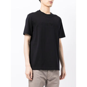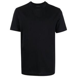 navy blue cotton logo print at the chest crew neck short sleeves straight hem Logo cotton t-shirt