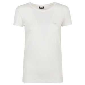 White T-shirt, short sleeves, elastic, straight hem. Logo t-shirt Size and Fit - This piece fits true to size. We recommend you get your regular size. Model is 1,75m / 5ft 8in wearing size S