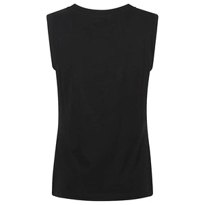 Black top, round neck, EMPORIO ARMANI logo, straight hem. Logo cotton tank top Size and Fit - This piece fits true to size. We recommend you get your regular size. Model is 1,75m / 5ft 8in wearing size S