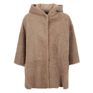 Poncho jacket with buttoned sleeves, hood, wide sleeves, front button closure and welt pockets. Alice suede leather jacket Size and Fit - This piece fits true to size. We recommend you get your regular size. Model is 1,75m / 5ft 8in wearing size 36 (FR)