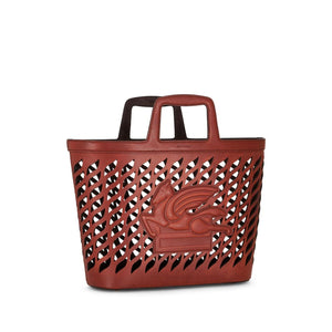 Pegasus shopping bag from ETRO featuring light brown, calf leather, embossed logo to the front, open top, circular top handles and main compartment. Perforated leather shopping bag Size and Fit - Width 13,39 in / 34 cm