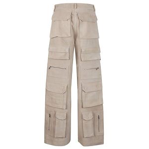 Beige trousers, cargo, zip closure and pressure button, multitaches. Suede cargo trousers Size and Fit - This piece fits true to size. We recommend you get your regular size. Model is 1,75m / 5ft 8in wearing size S