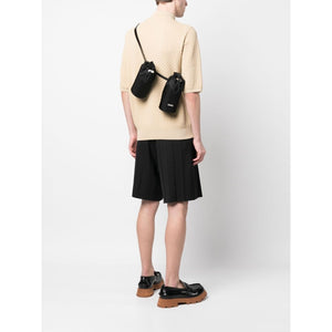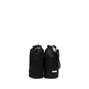 double-pouch belt bag from Ferragamo featuring black, calf leather, punch-hole detailing, two side pouch pockets and press-stud fastening. Hybrid double-bottle belt bag Size and Fit - Width 9,06 in / 23 cm