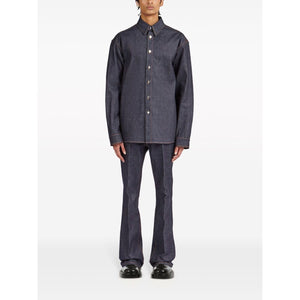 Una silhouette classica dalle proporzioni contemporanee, camicia sportiva in denim di puro cotone lavato, Le linee sono morbide, ma pulite, con spalla scesa, colletto alto a punta e bottoni a chiodo in metallo lungo l'abbottonatura, Da notare i polsini c Cotton shirt Size and Fit - This piece fits true to size. We recommend you get your regular size. Model is 1,84m / 6ft 1in wearing size 48 (IT)