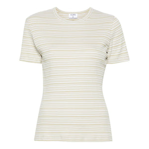 dark yellow/white organic cotton fine ribbed horizontal stripe pattern round neck short sleeves straight hem This item is made from at least 50% organic materials. Learn more about what makes a product Conscious on our Conscious Criteria page Striped cotton t-shirt Size and Fit - This piece fits true to size. We recommend you get your regular size. Model is 1,75m / 5ft 8in wearing size S