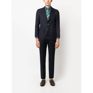 long-sleeve denim shirt from FINAMORE 1925 NAPOLI featuring navy blue, cotton, spread collar, front button fastening, long sleeves, buttoned cuffs and rear curved hem. Regular fit denim shirt Size and Fit - This piece fits true to size. We recommend you get your regular size. Model is 1,84m / 6ft 1in wearing size 39 (COLLAR CM)