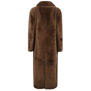 Brown colour, solid colour, double-breasted button closure, two flap pockets on the front, vent on the back. Long coat Size and Fit - This piece fits true to size. We recommend you get your regular size. Model is 1,75m / 5ft 8in wearing size 40 (IT)