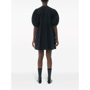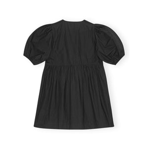 black organic cotton poplin texture front tie fastening round neck short puff sleeves thigh-length This item is made from at least 50% organic materials. Learn more about what makes a product Conscious on our Conscious Criteria page Organic cotton mini dress