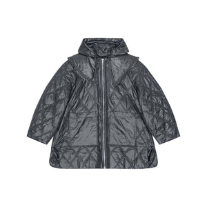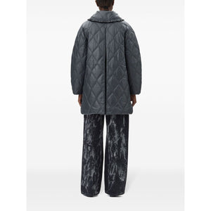blue-grey recycled polyester padded design diamond quilting front zip fastening slouchy hood twist detailing drop shoulder long sleeves two front patch pockets straight hem This item is made from at least 50% recycled or upcycled materials. For recycled synthetic clothing products, we highly recommend using a microfibre-catching washing bag to ensure that no microplastics that can pollute water are released in the process. We've partnered with Good On You — an independent agency that rates how brands perform in relation to their impact on the planet, people and animals, with a multi-criteria rating simplified to a five points scale. In order to be awarded our conscious label, larger brands need to score a minimum of four out of five ('Good'), while smaller brands must score at least three out of five ('It's A Start'). This item comes from a brand rated three out of five ('It's A Start') by Good on You at the time it was added on FARFETCH. Please note, this is a brand-level rating and Quilted short jacket Size and Fit - This piece fits true to size. We recommend you get your regular size. Model is 1,75m / 5ft 8in wearing size S