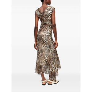 Ganni Leopard Marl Mesh Long Ruched Crossover Dress
