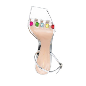 Ribbon Candy 85mm crystal-embellished sandals from GIANVITO ROSSI featuring multicolour, calf leather, transparent design, crystal embellishment, high stiletto heel, open toe, buckle-fastening ankle strap and branded insole. High heels Ribbon sandals Size and Fit - Heel 4,3 in / 11 cm
