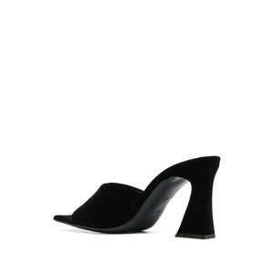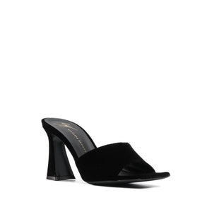 Solhene 90mm velvet-effect sandals from Giuseppe Zanotti featuring black, calf leather, velvet effect, square open toe, slip-on style, branded footbed, high block heel and leather sole. Solhene velvet mules Size and Fit - Heel 3,5 in / 9 cm