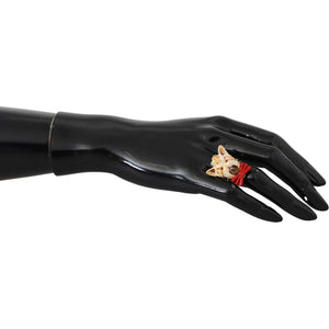 Dolce & Gabbana Gold Brass Resin Beige Dog Pet Branded Accessory Ring