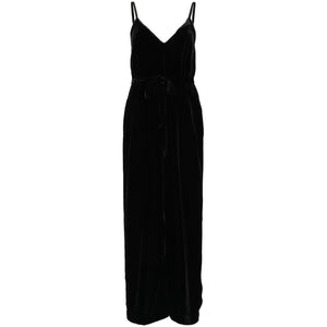 black velvet V-neck concealed side zip fastening adjustable shoulder straps sleeveless tied waist two side slit pockets V-back wide leg Velvet jumpsuit Size and Fit - This piece fits true to size. We recommend you get your regular size. Model is 1,75m / 5ft 8in wearing size S