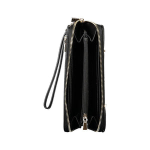 ANADELA SLG WALLET, 1 EXTERNAL POCKET, 4 COMPARTMENTS, COIN PURSE, DOUBLE CARD SPACES, CONTRASTING DETAILS, ZIP CLOSURE, REMOVABLE PULL HANDLE, LOGO