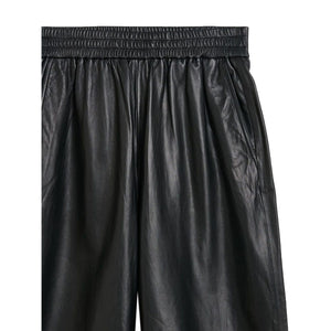 black leather elasticated waistband slip pockets to the sides two rear patch pockets cropped Eagle leather cropped trousers Size and Fit - This piece fits true to size. We recommend you get your regular size. Model is 1,75m / 5ft 8in wearing size 36 (FR)