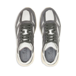 anthracite grey/light grey suede/calfskin panelled design logo-debossed tongue front lace-up fastening round toe branded footbed chunky rubber sole H665 leather sneakers Size and Fit - Heel 1,6 in / 4 cm; Platform 0,6 in / 1,5 cm