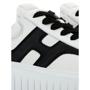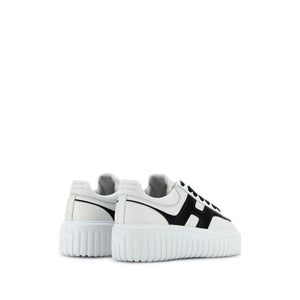 white black leather nappa leather logo patch to the side signature H logo logo-print tongue front lace-up fastening branded insole round toe platform sole H-Stripes leather sneakers