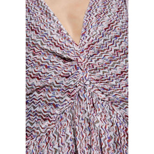 blush pink all-over graphic print draped detailing gathered detailing balloon sleeves flared design asymmetric hem Ruline short dress Size and Fit - This piece fits true to size. We recommend you get your regular size. Model is 1,75m / 5ft 8in wearing size 36 (FR)