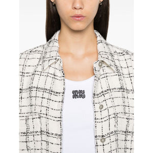 white/black tweed bouclé construction front button fastening plaid check pattern straight-point collar long sleeves buttoned cuffs two chest patch pockets side slits high-low hem Zunny tweed shirt Size and Fit - This piece fits true to size. We recommend you get your regular size. Model is 1,75m / 5ft 8in wearing size 36 (FR)