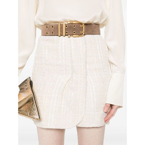 sand beige/multicolour cotton blend bouclé design wrap design unlined concealed side zip fastening Cotton blend wrapped skirt Size and Fit - This piece fits true to size. We recommend you get your regular size. Model is 1,75m / 5ft 8in wearing size 36 (FR)