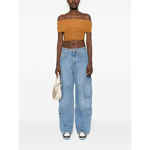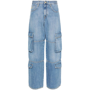 medium blue cotton-lyocell blend denim contrast stitching embroidered logo to the front logo patch to the rear belt loops classic five pockets two side flap pockets faux pocket detail to the sides straight leg low-rise front button and zip fastening This item contains at least 50% materials which are certified or widely recognised as having a lower environmental impact through production and/or manufacturing processes that reduce water consumption and the use of harmful chemicals, or re-use by-products of the production process. Riri relaxed fit cargo jeans Size and Fit - This piece fits true to size. We recommend you get your regular size. Model is 1,75m / 5ft 8in wearing size 27 (WAIST CM)