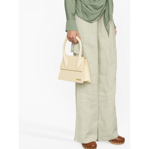 Le Grand Chiquito tote bag from Jacquemus featuring ivory white, calf leather, gold-tone logo plaque, single rolled top handle, foldover top with magnetic fastening, adjustable detachable shoulder strap and main compartment. Le Grand Chiquito leather handbag Size and Fit - Width 9,06 in / 23 cm Height 6,3 in / 16 cm Depth 3,54 in / 9 cm Handle 5,91 in / 15 cm Strap 20,08 in / 51 cm