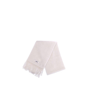 The Jacquemus fringed Scarf is a long accessory crafted from soft mohair-alpaca. The grosgrain embroidered logo detail adds a refined touch to a warm and enveloping design.