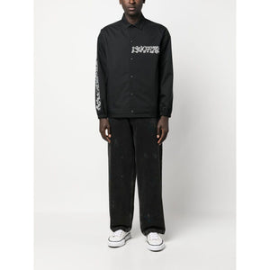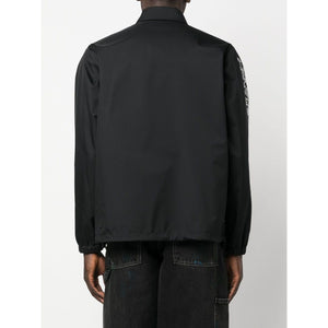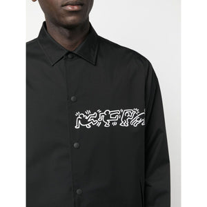 Keith Haring-print shirt jacket from Junya Watanabe featuring black/white, graphic print at the chest, graphic-print sleeves, pointed flat collar, front press-stud fastening, two side welt pockets, long sleeves, elasticated cuffs and straight hem. Nylon jacket Size and Fit - This piece fits true to size. We recommend you get your regular size. Model is 1,84m / 6ft 1in wearing size M