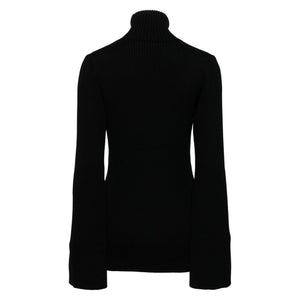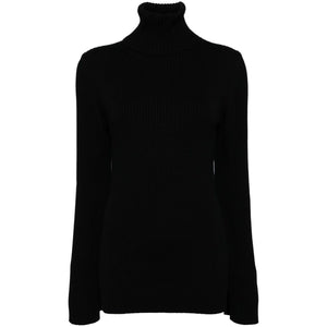 black wool blend knitted construction ribbed knit roll neck long sleeves straight hem Ribbed wool turtle-neck sweater Size and Fit - This piece fits true to size. We recommend you get your regular size. Model is 1,75m / 5ft 8in wearing size 1 (NUM)