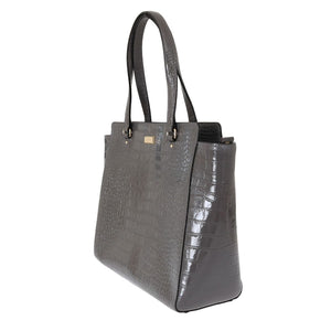 Kate Spade Grey Croc Embossed Leather Elissa Bristol Drive Tote Handbag Bag