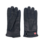 midnight blue calf leather smooth grain full-finger design tonal logo plaque tonal stitching side press-stud fastening full lining Leather gloves