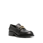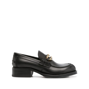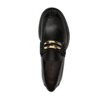 buckled leather loafers from Lanvin featuring black, calf leather, gold-tone hardware, decorative buckle detail, apron toe, branded leather insole, low block heel and rubber outsole. Medley leather loafers Size and Fit - Heel 1,6 in / 4 cm; Platform 0,6 in / 1,5 cm
