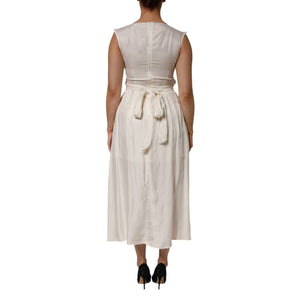 L'Autre Chose Ivory White Sleeveless Maxi Cupro Viscose Dress