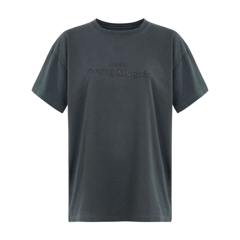 beluga grey cotton jersey texture embroidered logo to the front signature four-stitch logo crew neck drop shoulder short sleeves straight hem Logo cotton t-shirt Size and Fit - This piece fits true to size. We recommend you get your regular size. Model is 1,75m / 5ft 8in wearing size S