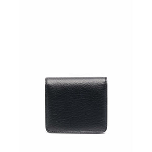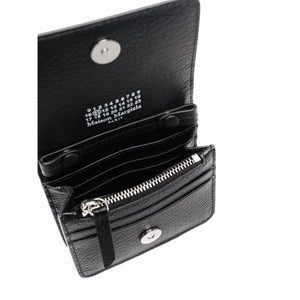 Black calf leather four-stitch leather chain wallet from Maison Margiela featuring signature four-stitch logo, pebbled texture, chain-link detailing, internal zip-fastening pocket and internal card slots. Four Stitches leather wallet on chain Size and Fit - Width 3,54 in / 9 cm