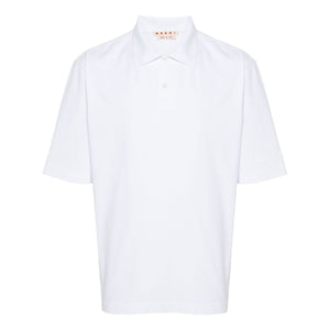 white organic cotton jersey texture logo patch at the sleeve polo collar short sleeves short side slits straight hem short front button fastening Logo cotton polo shirt Size and Fit - This piece fits true to size. We recommend you get your regular size. Model is 1,84m / 6ft 1in wearing size 48 (IT)
