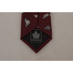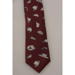 Dolce & Gabbana Maroon Hat Pattern 100% Silk Adjustable Accessory Tie