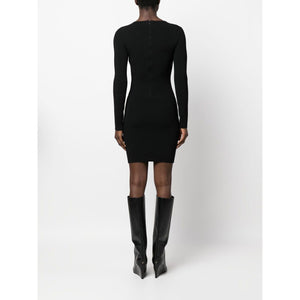 ribbed-knit mini dress from MICHAEL MICHAEL KORS featuring jet black, recycled viscose, ribbed knit, cut-out detailing, round neck, rear zip fastening, long sleeves and straight hem. Conscious: This item is made from at least 50% recycled or upcycled materials. For recycled synthetic clothing products we highly recommend using a microfibre-catching washing bag to ensure that no microplastics that can pollute water are released in the process.. Mini dress Size and Fit - This piece fits true to size. We recommend you get your regular size. Model is 1,75m / 5ft 8in wearing size S