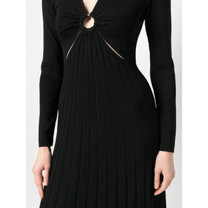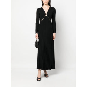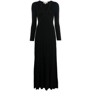 pleated V-neck midi dress from MICHAEL KORS featuring jet black, pleat detail, hoop detailing, V-neck, long sleeves and mid-length. Viscose long dress Size and Fit - This piece fits true to size. We recommend you get your regular size. Model is 1,75m / 5ft 8in wearing size S