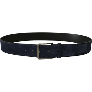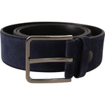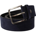 Dolce & Gabbana Navy Blue Velvet Leather Silver Logo Buckle Belt